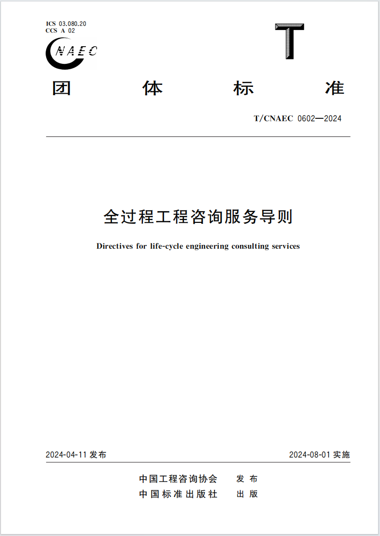【晨越動態】集團聯合主編中咨協團體標準《全過程工程咨詢服務導則》(T/CNAEC 0602-2024)正式發布實施
