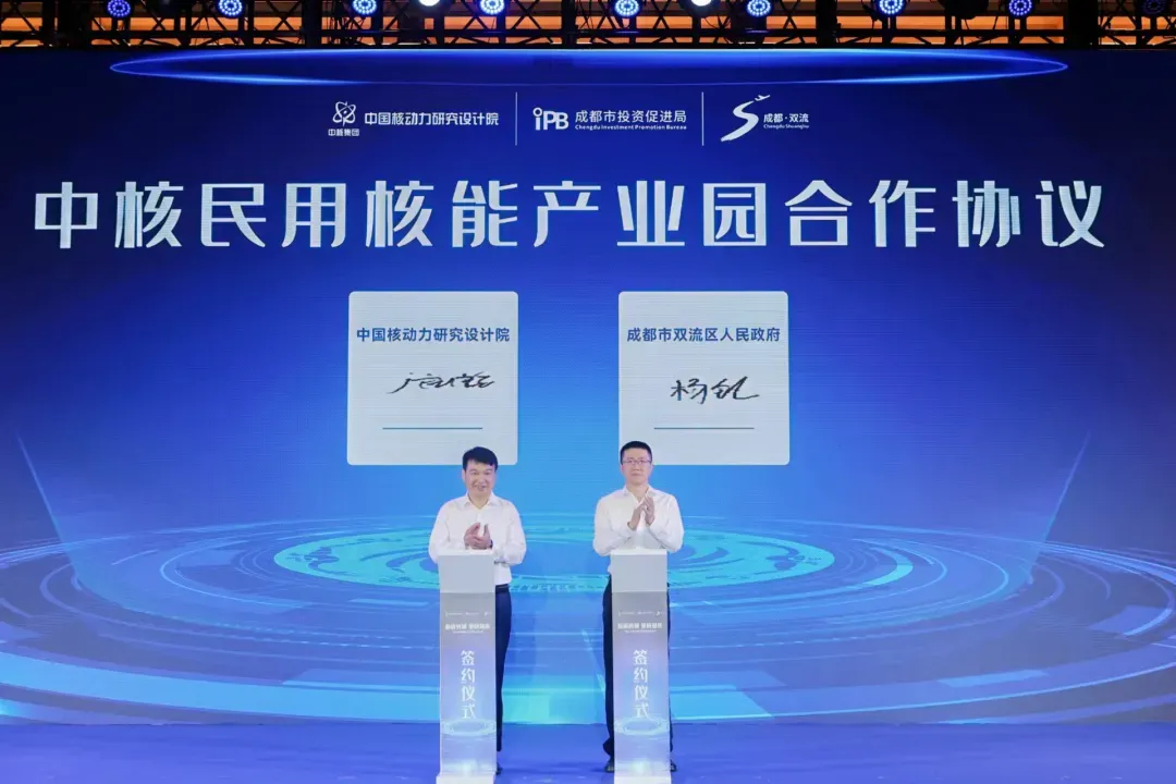 會上,成都市推介了成都投資環境,雙流區推介了核產業生態及中核民用核能產業園,核動力院作核能產品及技術服務專題推介。本次活動現場簽約地企合作、成果轉化、民用核能等項目32個,投資總額超167億元,包括核動力院一所、二所、四所、設計所、核總、海川、海光、先進核能技術全國重點實驗室等一批入園產業化項目,以及一批核能科技成果轉化、基金合作、產品與技術服務項目,涵蓋核電裝備生產制造、核醫療研發與產業化、核藥生產等民用核產業領域,以及核技術應用成果轉化天使基金等合作項目。