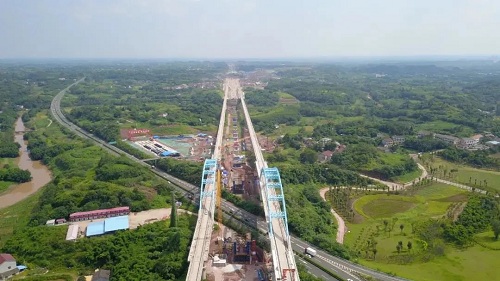 2021年5月21日上午10時,在隆隆的鞭炮與歡呼聲中,自貢東站配套設施項目全長1.07km的高架橋最后一聯鋼箱梁成功吊裝合龍,標志著高架橋主體全線貫通,為確保2021年6月30日工程正常投入使用又進了一步。