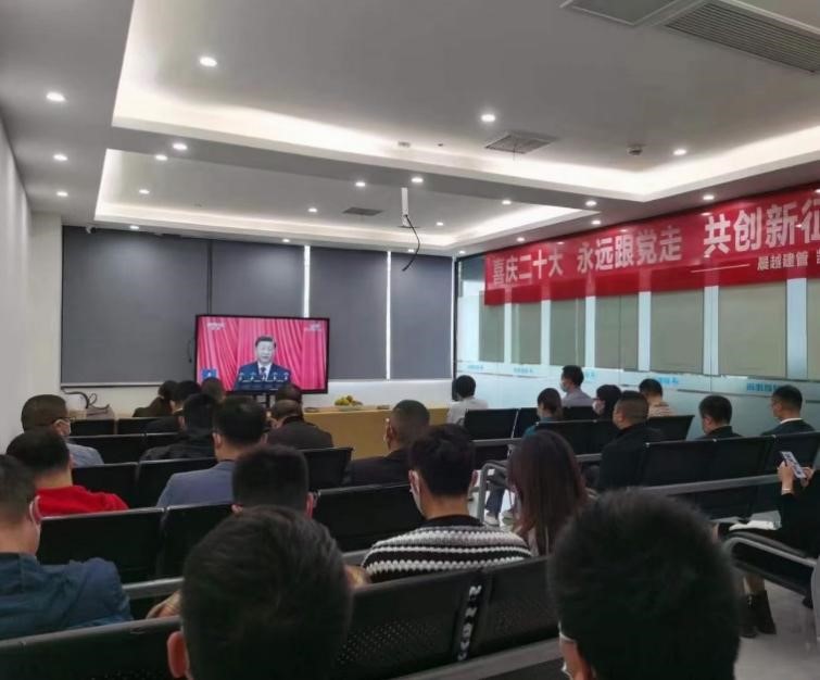 2022年10月16日,舉世矚目的中國共產黨第二十次全國代表大會在北京隆重開幕,習近平總書記代表第十九屆中央委員會向黨的二十大作報告。晨越建管集團黨委提前作出安排布置,組織黨員、積極分子、分公司及項目部員工收看收聽大會開幕盛況。
