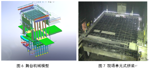 項(xiàng)目觀演廳均設(shè)計有舞臺機(jī)械系統(tǒng),在深化設(shè)計階段建立SolidWorks模型,進(jìn)行運(yùn)動干涉檢查。通過模型實(shí)現(xiàn)設(shè)備和構(gòu)件的單元式分段、工廠化預(yù)制、現(xiàn)場單元式組裝,保證設(shè)備與構(gòu)件的安裝質(zhì)量。