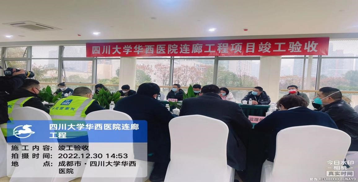 2022年12月30日,由建設方四川大學華西醫院組織各方責任主體,在成都市武侯區質安站見證下進行了竣工驗收。驗收人員在對現場實體施工質量及過程資料進行檢查后,發表竣工驗收意見;項目總監理工程師李忠義對本項目的開工前準備工作,施工過程中的實體質量,資料及各方對法律法規的執行情況發表竣工驗收意見。最終,該項目質量評定為合格,順利通過竣工驗收。