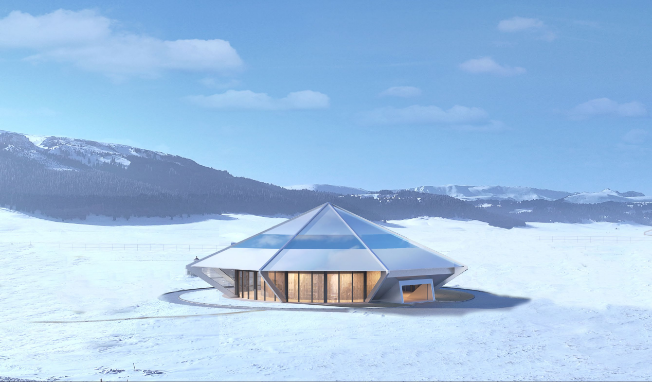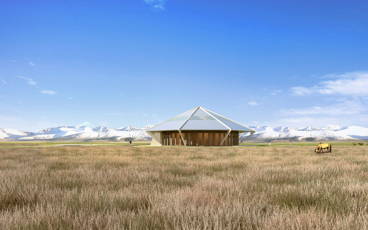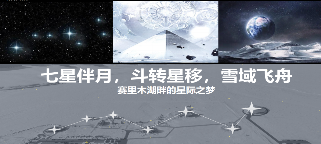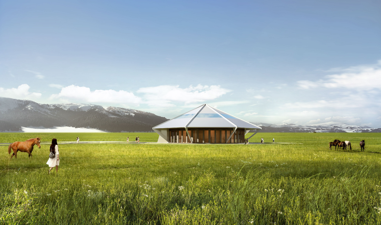 項目總體規劃以“斗轉星移,雪域飛舟”為理念,將游客服務站等單體建筑構想為一艘艘穿越星河的璀璨飛舟,破開時空壁壘,降落在天山雪嶺環繞的賽里木湖畔,與壯麗的自然景觀融為一體,將周邊建筑通過道路和景觀串聯起來,猶如七星伴月,構成一幅靈動的畫面。設計以傳統蒙古包為靈感,融入現代技術元素,打造具有現代感和傳統文化特色的建筑以保護自然資源環境為基礎,實現生態可持續發展。