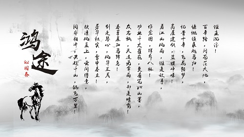 同舟相濟,共赴千山,鯤飛萬里! 扶清風直上,云間得意, 芳華秋實,雪中春立! 劍走琴心,風華正茂, 春草晨陽馬蹄急! 眾志誠, 天道無霽雨,卻是晴霓! 功業千丈崔巍,更有筆如山墨, 作宏圖,揮斥八極! 看江山風雨,誰是敵手, 高屋建瓴,藍旗崢嶸! 憶昔十年,飛花輕夢, 慷慨須乘越馬歸, 百年路, 問蒼茫大地,誰主浮沉!