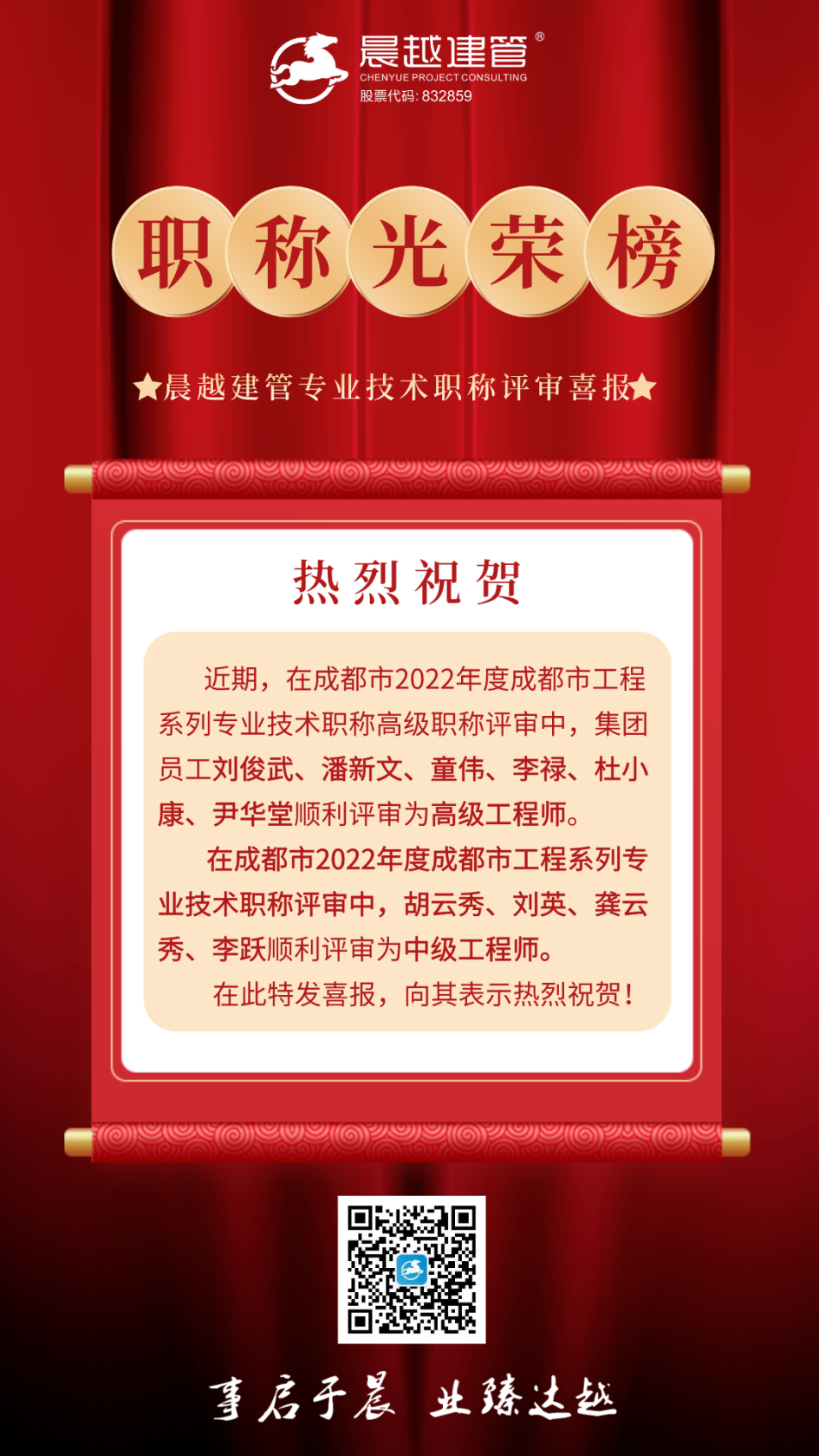 熱烈祝賀晨越建管集團員工獲評中高級工程師職稱