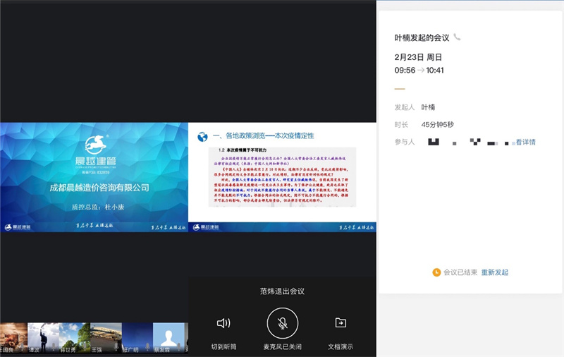 ? “務實、進取、價值、共贏”,一直是晨越人踐行的企業文化精神。疫情期間,晨越人把握碎片化學習時間,不間斷輸入輸出。2月23日上午10點,全咨人力公司培訓部組織了《疫情期間建設項目合同延期相關政策分析及案例講解》線上培訓,晨越建管集團近300名員工在線參加了此次培訓,下午應邀對集團重要客戶開展了線上專題分享活動。